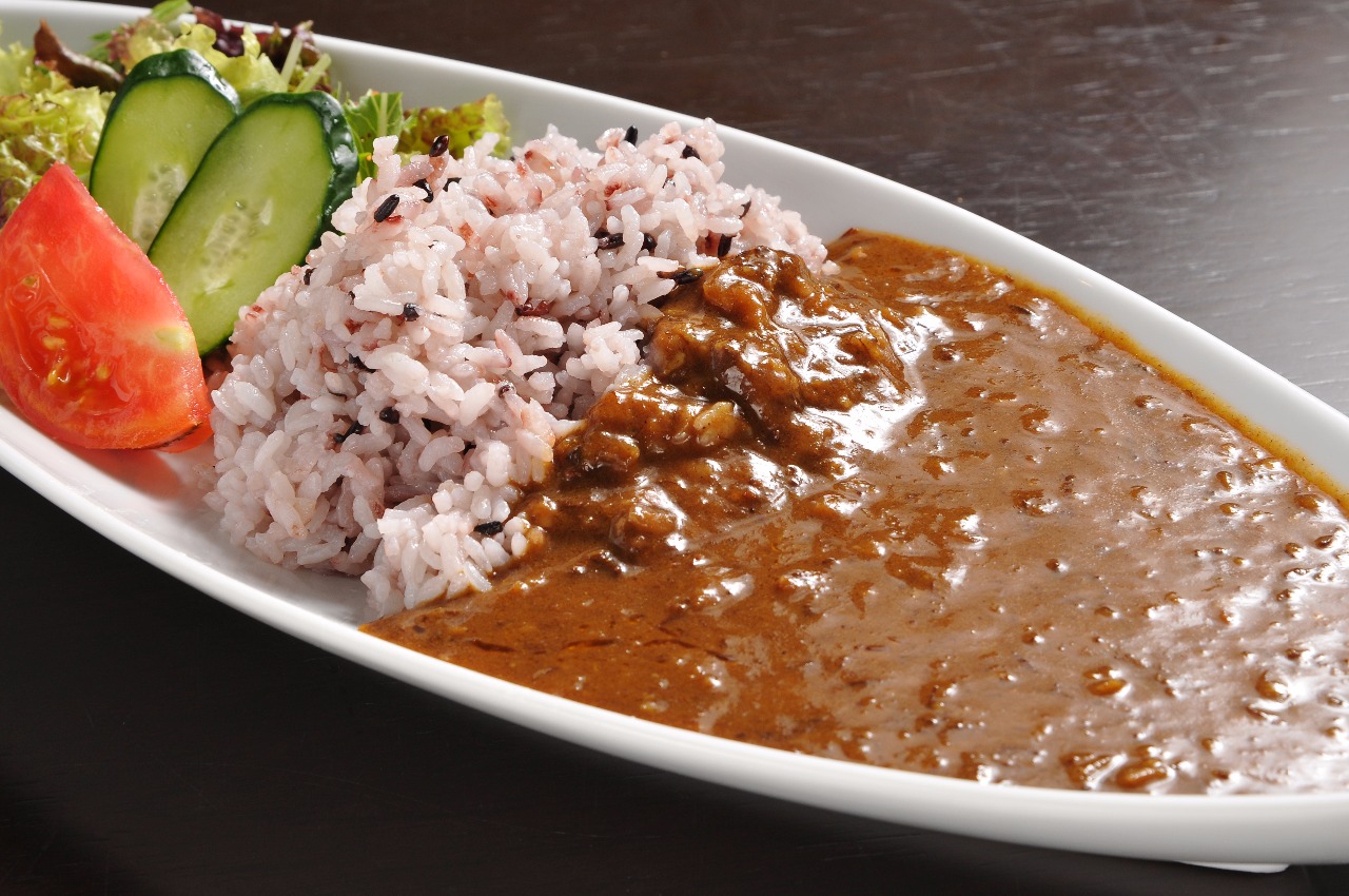 黒米カレー 700円 地元斑鳩産の黒米。もっちりとした食感がカレーと合います。